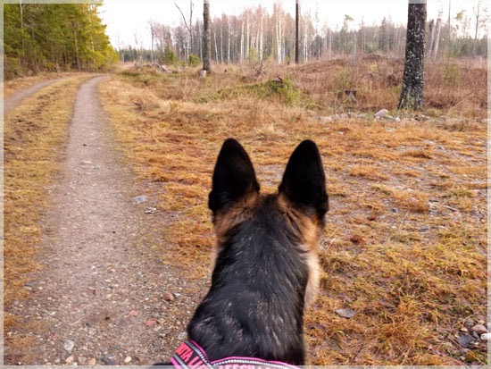 Sen bar det av mot skogen.